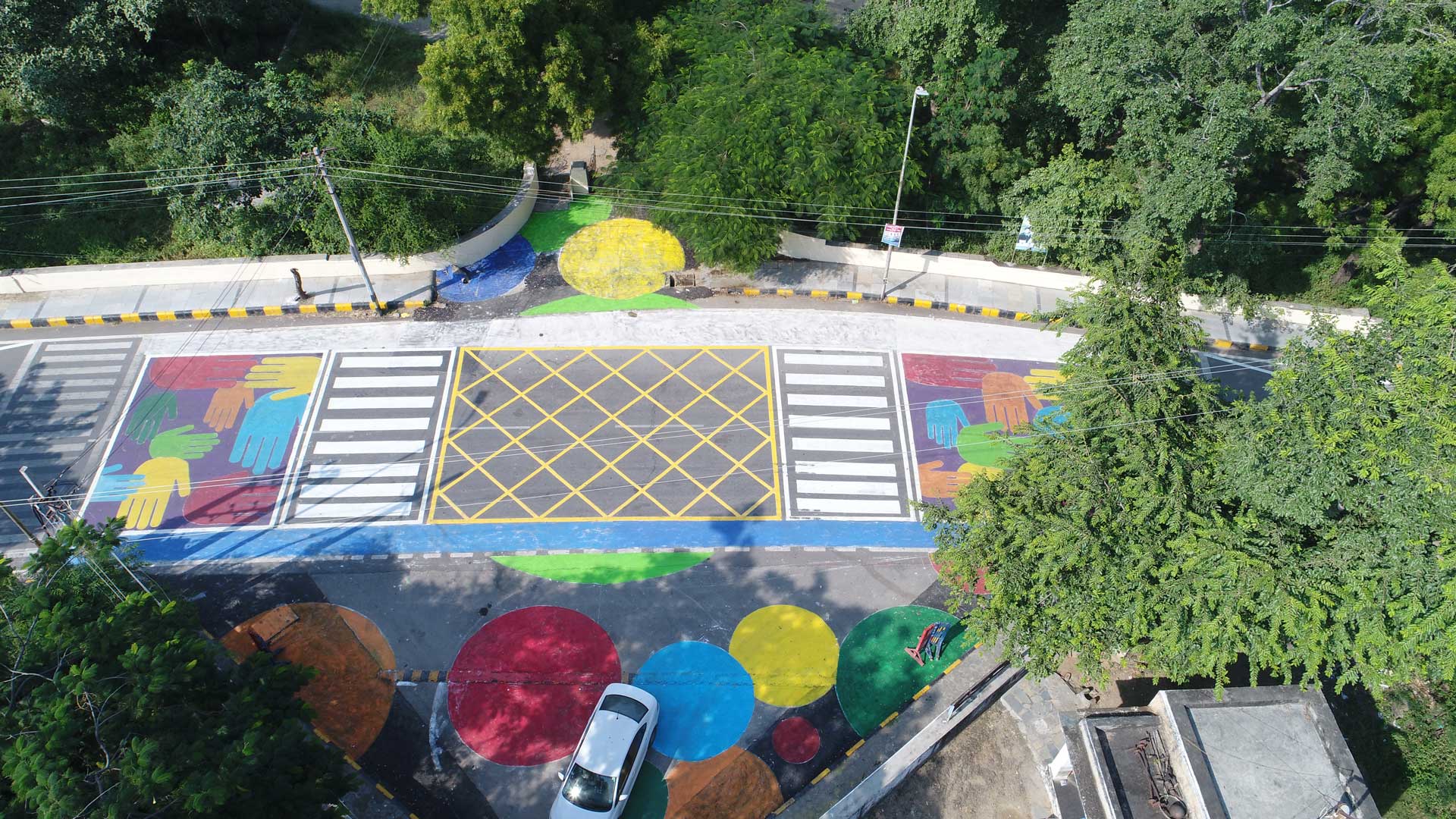 In a “tactical urbanism” intervention – a quick, low-cost temporary project designed to demonstrate the potential for permanent change – brightly coloured markings were painted on the road outside a school at Vidya Bhawan Crossing in late 2019. This led to more children and caregivers walking to and from school, as they felt safer while crossing streets. This in turn resulted in fewer vehicles coming to pick up and drop off children, contributing to reduced carbon emissions and better air quality around school buildings (ICLEI South Asia et al., 2020b).