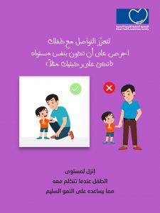 The blue sticker focuses on eye contact, the yellow sticker focuses on screen time, and the purple sticker is a reminder to be physically at the child’s level (eye level) when talking to them.