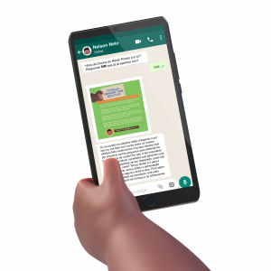 We launched Nelson on WhatsApp, the major communications platform in Brazil, on 4 March, 2020 – just before the pandemic hit. He now reaches around 2,000 people every week on WhatsApp and has various other social media channels: he has more than 24,000 followers on Instagram and 38,000 on Facebook, together reaching over 6 million people monthly. If you search for @nelsononene on social media, you will see that he is a baby with