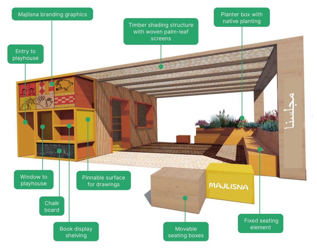 Creating interactive environments, Majlisna aims to strengthen the physical and mental wellbeing of young children and caregivers, and to deepen families’ connection to their cultural heritage and natural environment, through five core components: